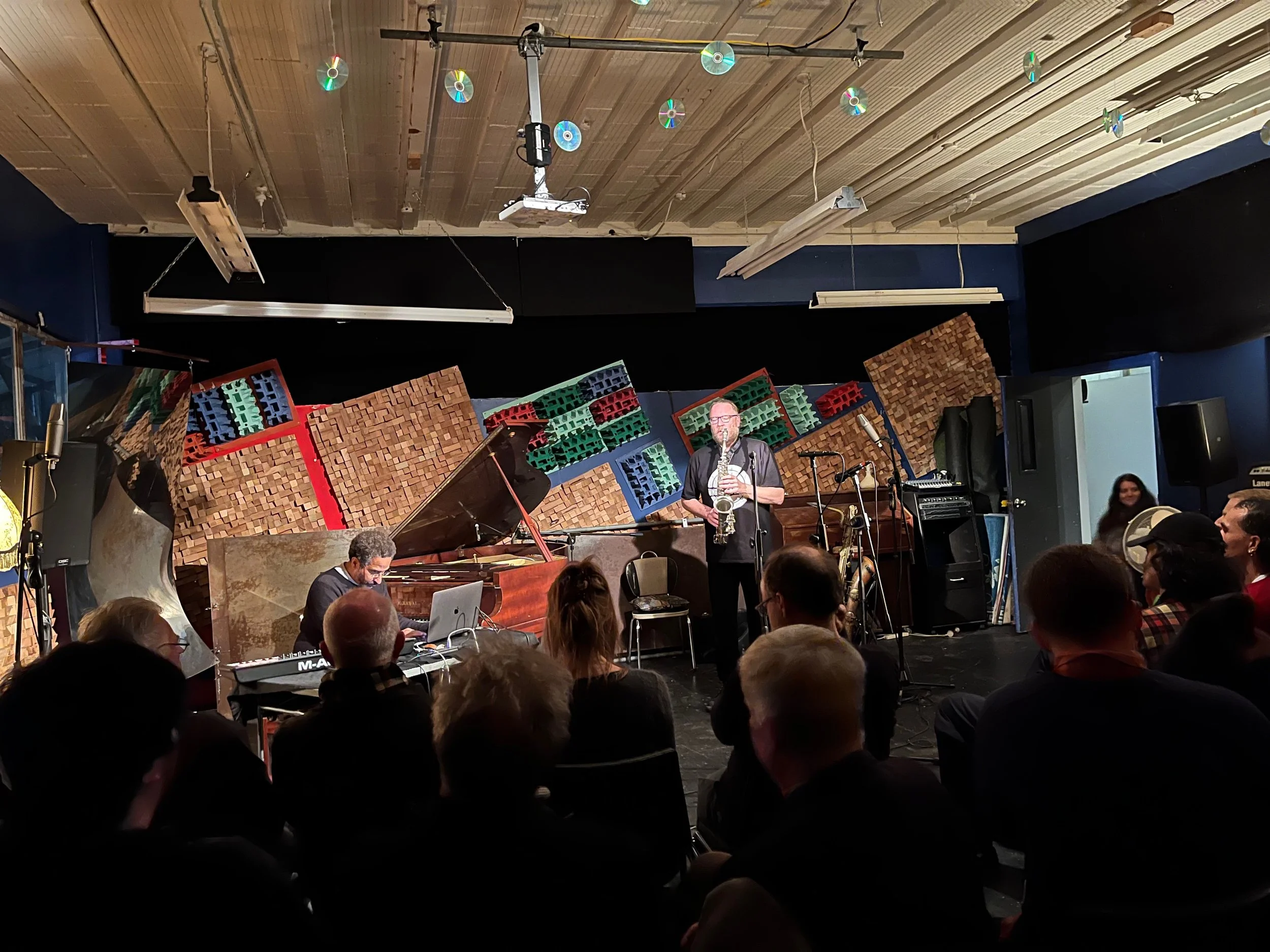 Performing a duo electroacoustic piece with multi-instrumentalist Jeff Henderson at the Audio Foundation, Auckland.